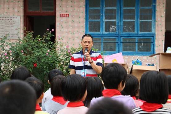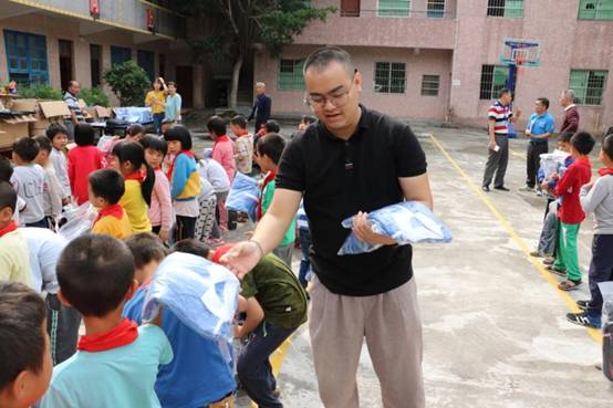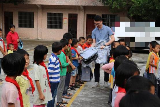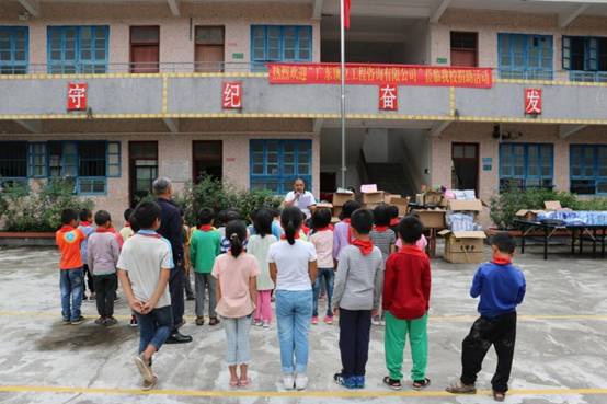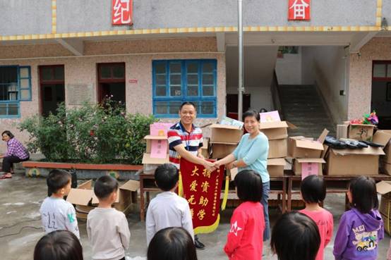 早上九点,官方网站带着一如既往的初心从公司楼下出发, 从广州前往肇庆广宁县石咀镇。经过连续不断的蜿蜒山路,三个多小时后官方网站到达了石咀镇。石咀镇,这个官方网站来了三年的地方,感觉是那么的熟悉,从镇上到周围的村庄都能看到小学生的身影。为了不打扰学生休息,官方网站选择下午14:00到达建中小学。此时已经有学生陆续返校,见官方网站到来,学生们打开了校门,不约而同喊着“欢迎欢迎”,脸上洋溢着欢欣的笑容。建中村委、建中小学的校长、老师以石咀镇中心小学校长及副校长及学生们已集中等候,公司购买的打印机、书包、校服、体育用品、学习文具以及图书均摆放在教室门口的红旗下。根据学校的安排,现场举办了简单而有意义的捐赠仪式,为感谢公司的捐助,校长还赠送了 “大爱无疆,捐资助学” 的锦旗。